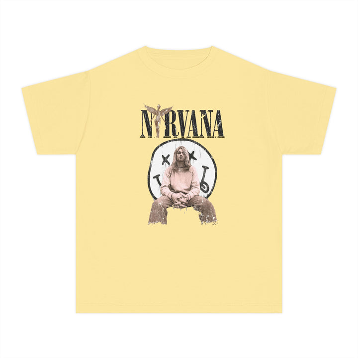 Relive the golden age of grunge with this classic Nirvana band t-shirt! Featuring the iconic smiley face logo and bold "NIRVANA" text, this vintage-inspired graphic tee is perfect for fans of 90s music, alternative rock, and grunge fashion. Whether you're heading to a concert, chilling at home, or styling a streetwear look, this shirt delivers both comfort and timeless edge.